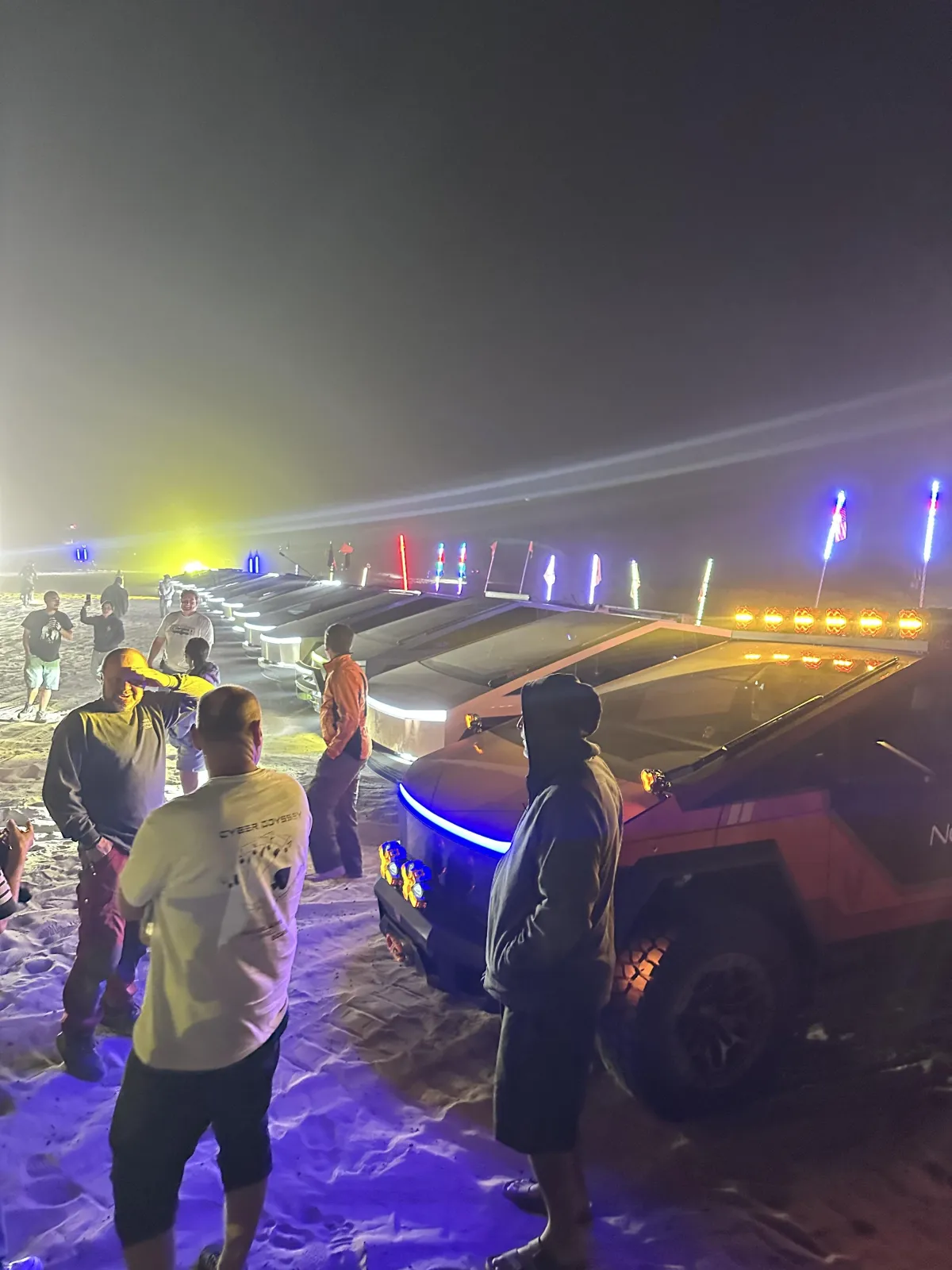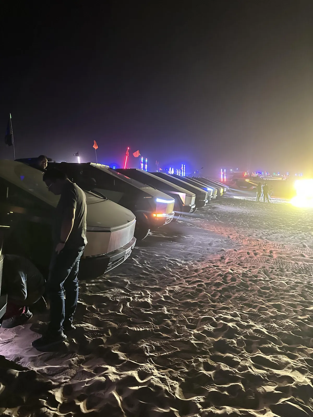 Light Shows & Nighttime Thrills: As dusk fell, the dunes lit up with stunning light displays from the vehicles’ LED setups, creating a surreal, futuristic glow against the starry sky. Drone shots captured the fleet’s synchronized shimmer, making it feel like a cyberpunk rave in the wilderness.